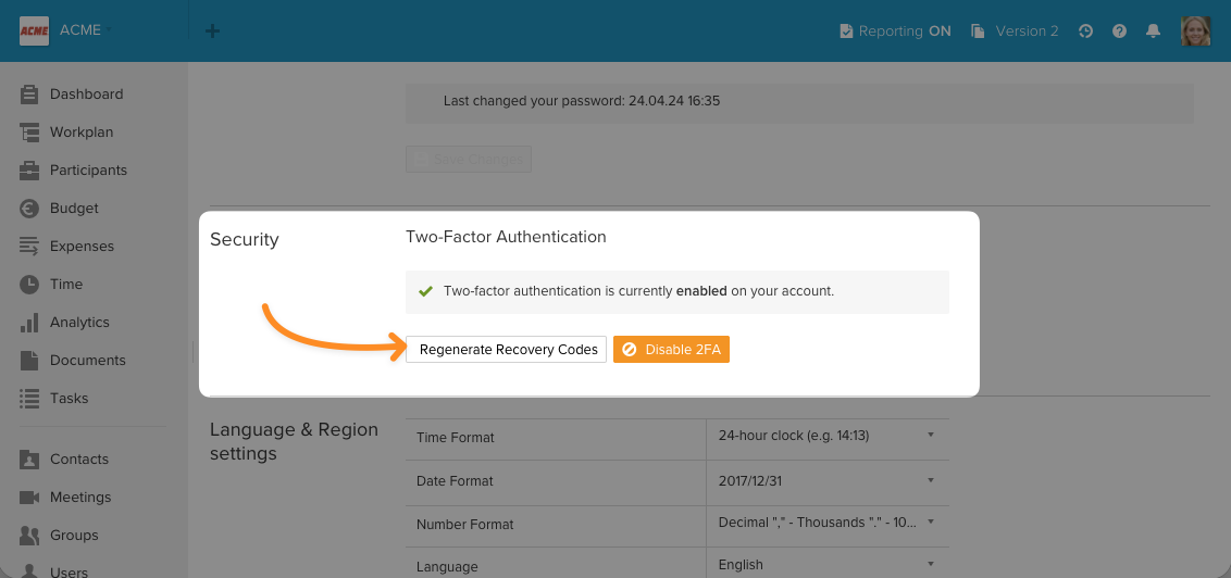 - Regenerate recovery codes