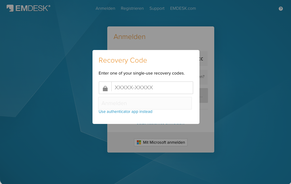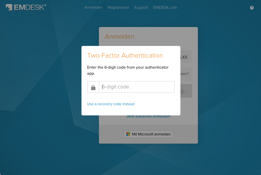These apps generate time-based one-time codes (TOTP) that refresh every 30 seconds. Any app that supports TOTP will work with EMDESK.